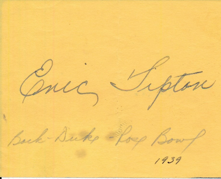 Eric Tipton Duke Blue Devils 1939 Rose Bowl Cut Signature 146523