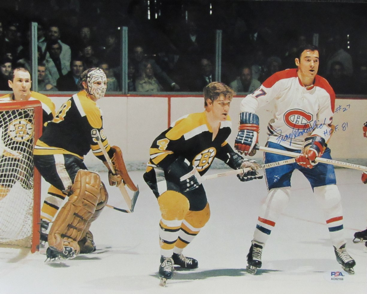Offered is a Frank Mahovlich HOF Signed/Inscribed "HOF 81" 11x14 Photo Montreal Canadiens. This photo is authenticated by PSA/DNA and includes their Tamper-proof Hologram Sticker.