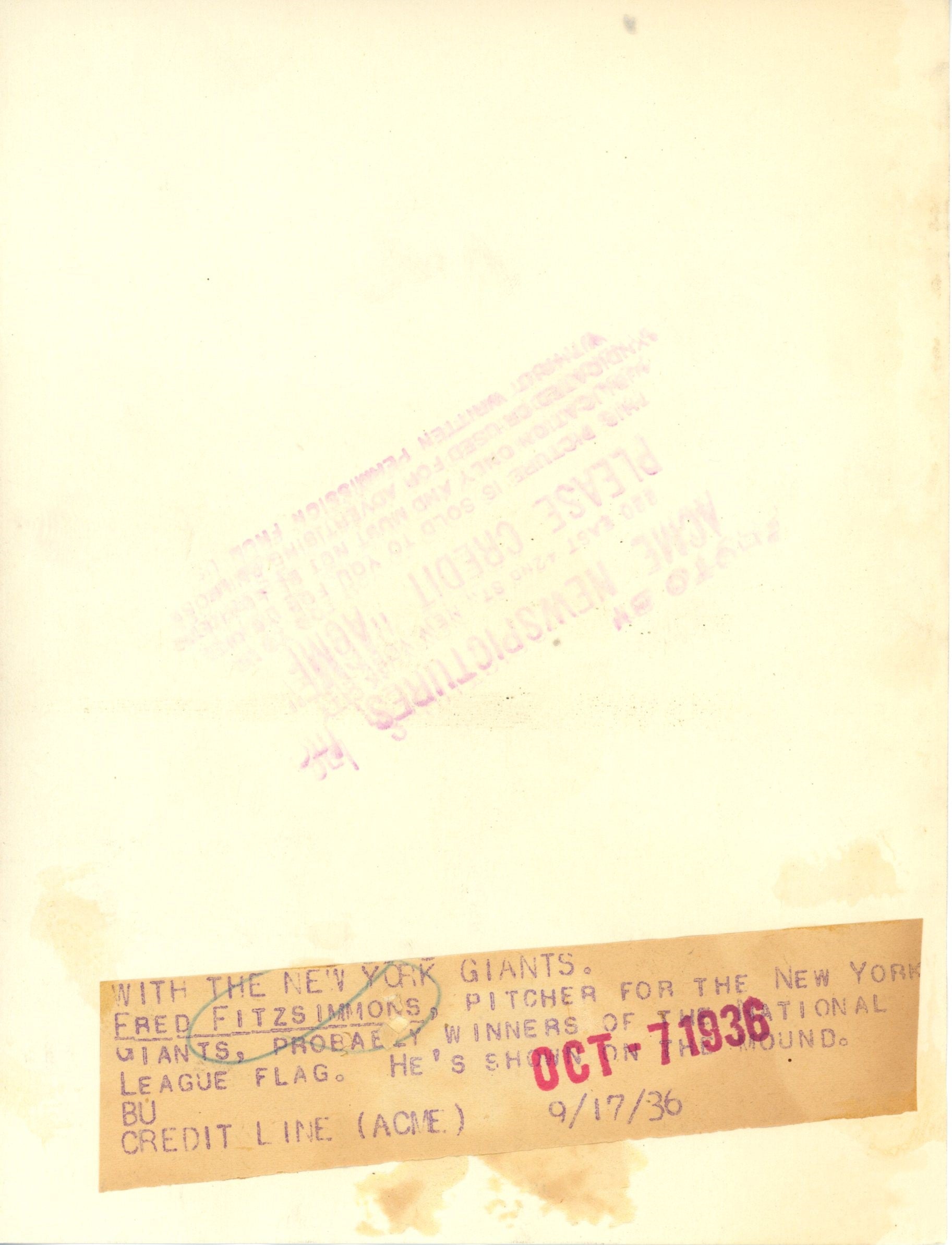 Fred Fitzsimmons 6x8 B/W 1936 Press Wire Photo New York Giants