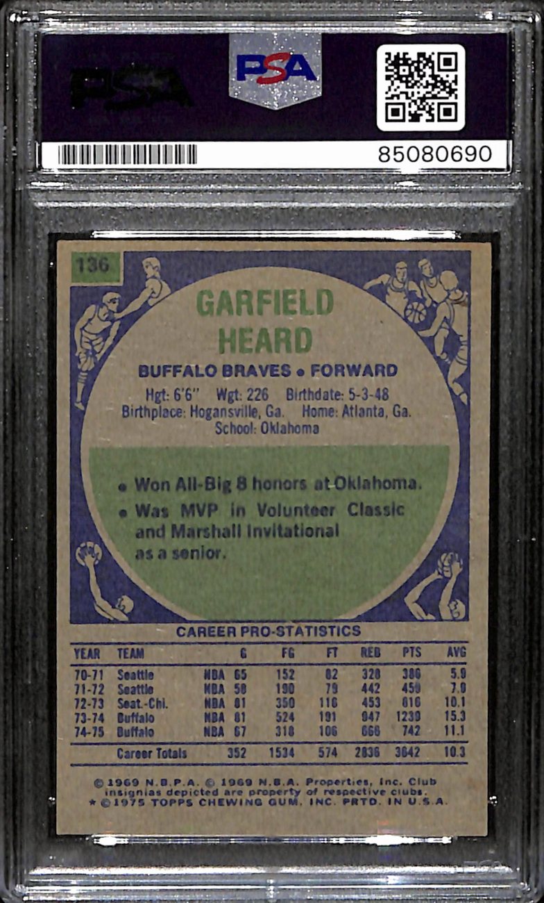 Offered is a Garfield Heard Autographed 1975-76 Topps Card #136 Buffalo Braves. This Card is authenticated by PSA/DNA and is encapsulated in their tamper-proof plastic case.