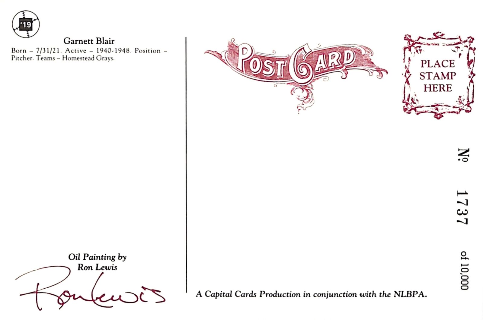 Garnett Blair Signed Negro League - Homestead Grays Ron Lewis Post Card 181226