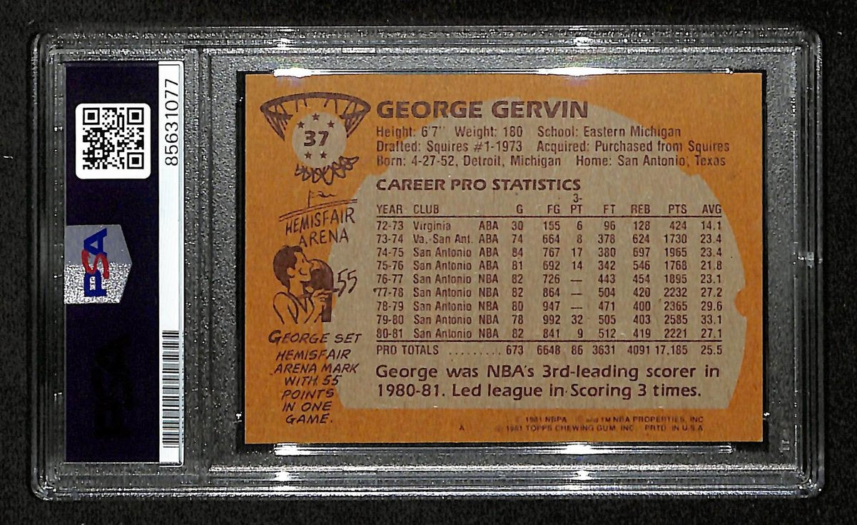 George Gervin HOF Signed/Inscribed 1981 TOPPS Card #37 Spurs PSA/DNA 200457