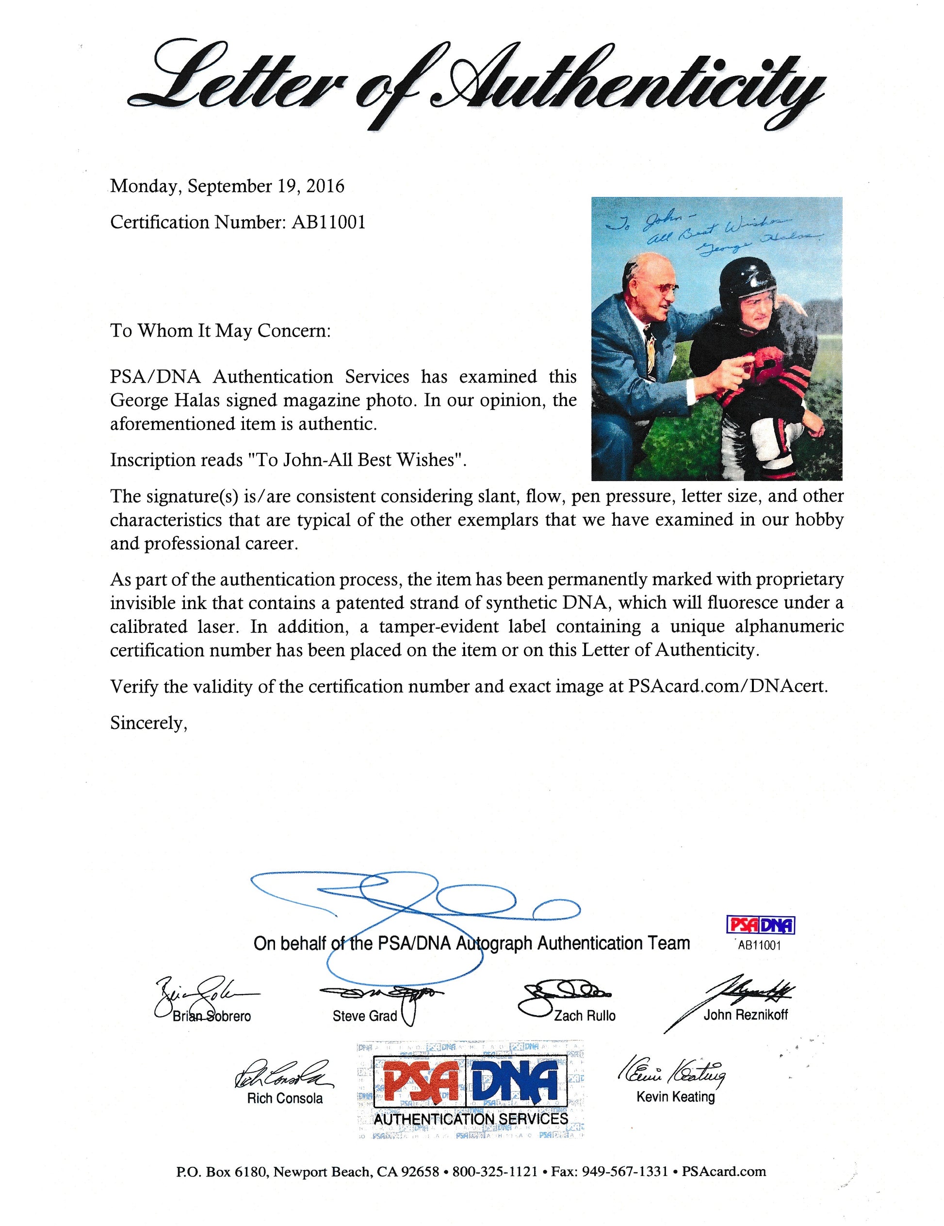 George Halas Autographed 8x10 Magazine Page Photo Chicago Bears PSA/DNA 183287