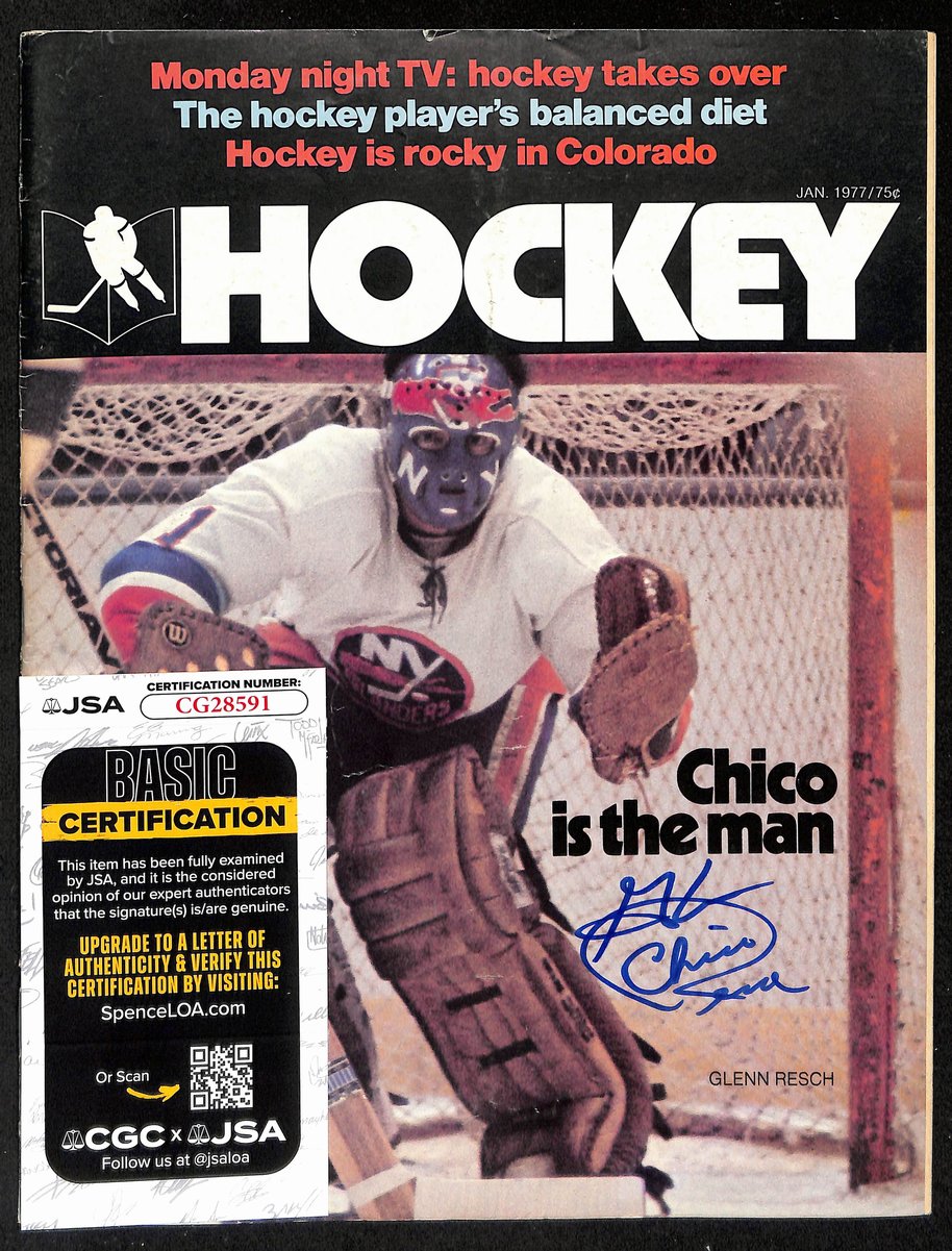 Offered for sale is a Glenn Chico Resch New York Islanders Signed/Auto Hockey Magazine JSA 197287