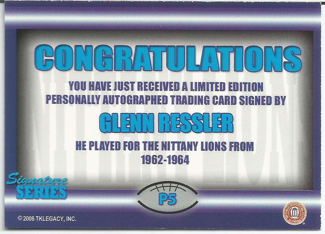 Glenn Ressler Signed/Autographed 2006 Penn State TKLegacy Card #P5 151173