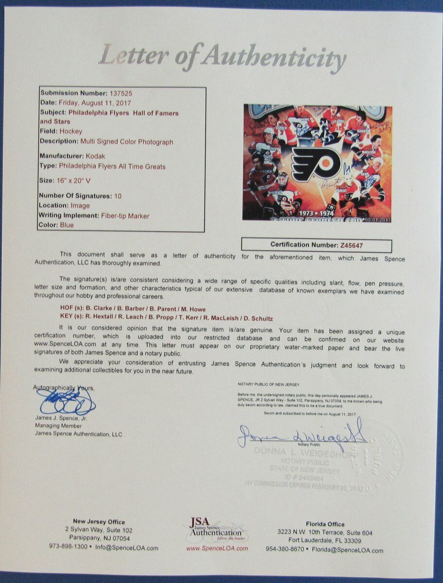 Hextall Clarke Parent Flyers ALL TIME GREATS 10 AUTOS Signed 16x20 photo JSA