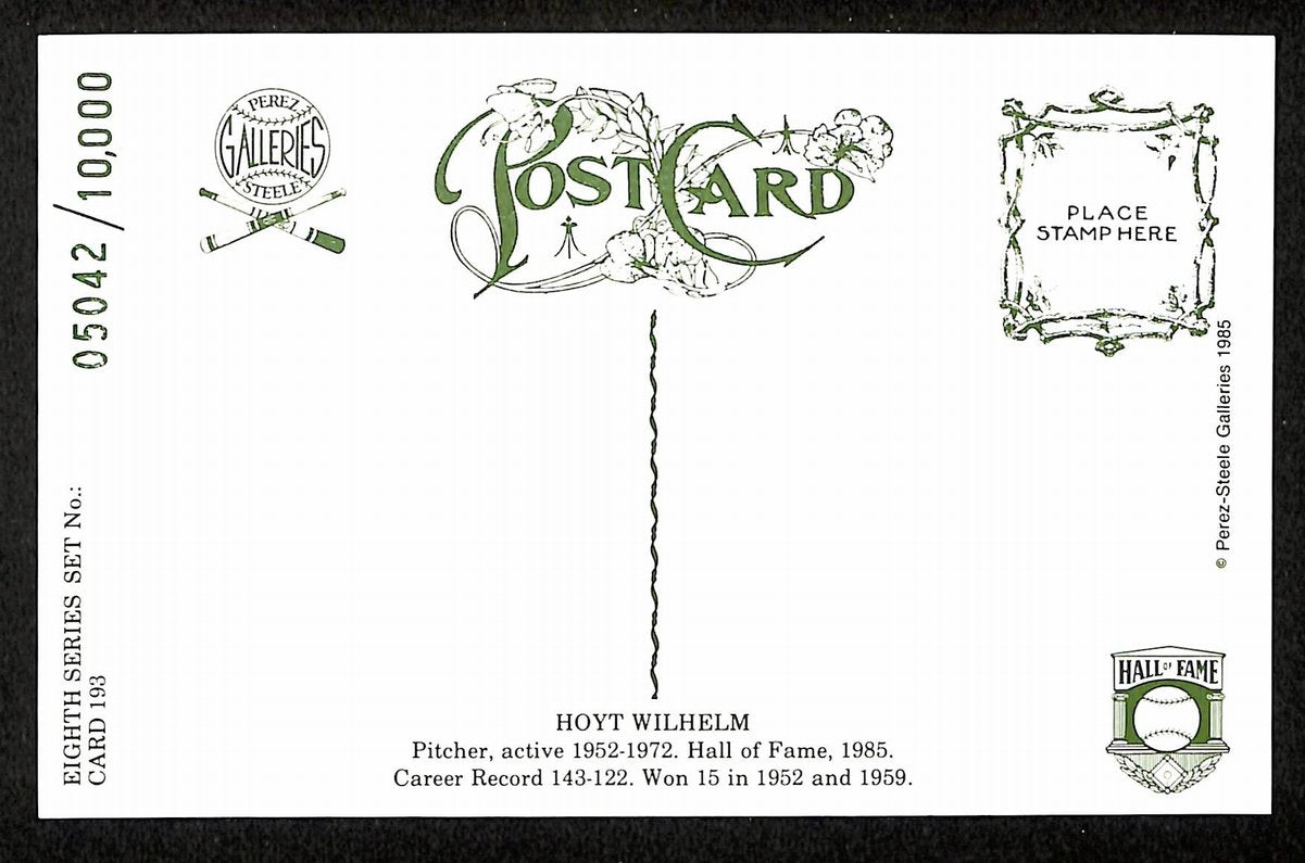 Hoyt Wilhelm HOF Signed/Auto 1985 Perez-Steele Postcard #193 NY Giants 199188