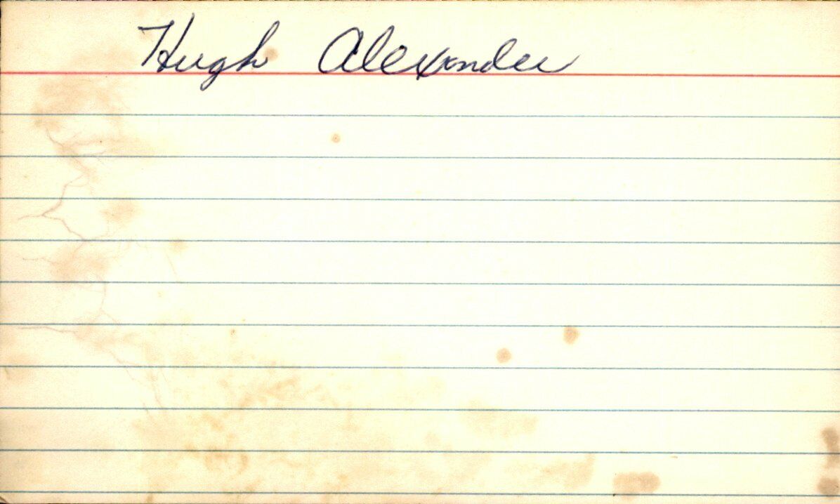 Hugh Alexander Cleveland Indians d.2000 Signed/Autographed 3x5 Index Card Seller guarantees that this signature will pass any third party authentication service such as JSA or PSA/DNA.