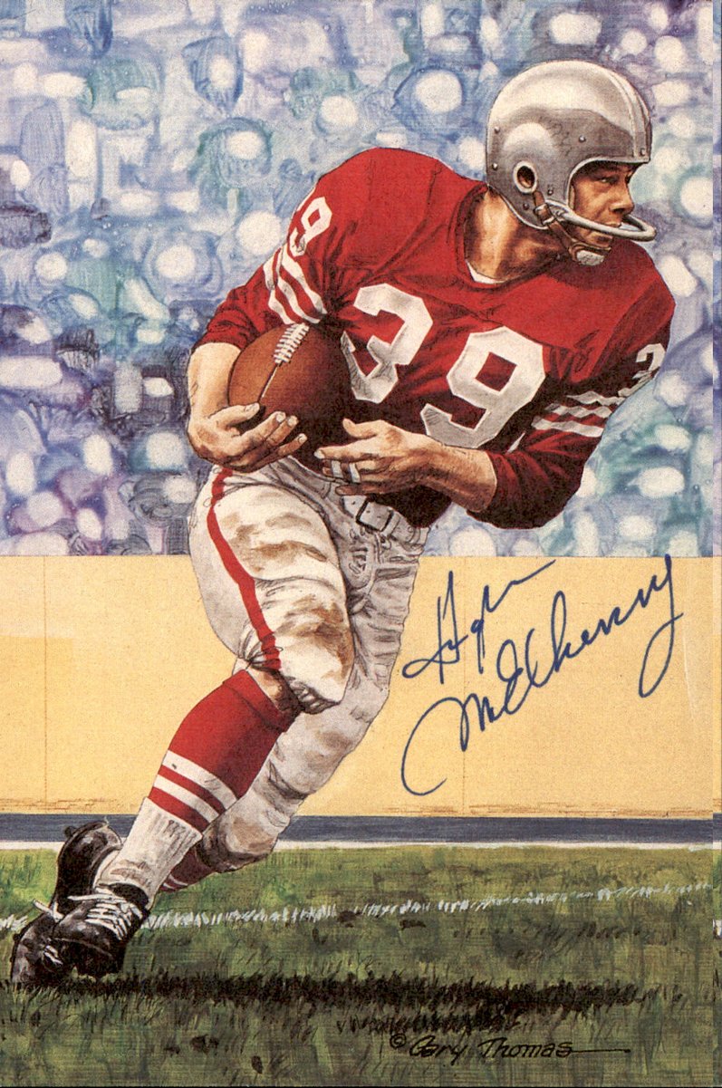 Hugh McElhenny 49ers HOF Autographed Goal Line Art GLAC Postcard JSA