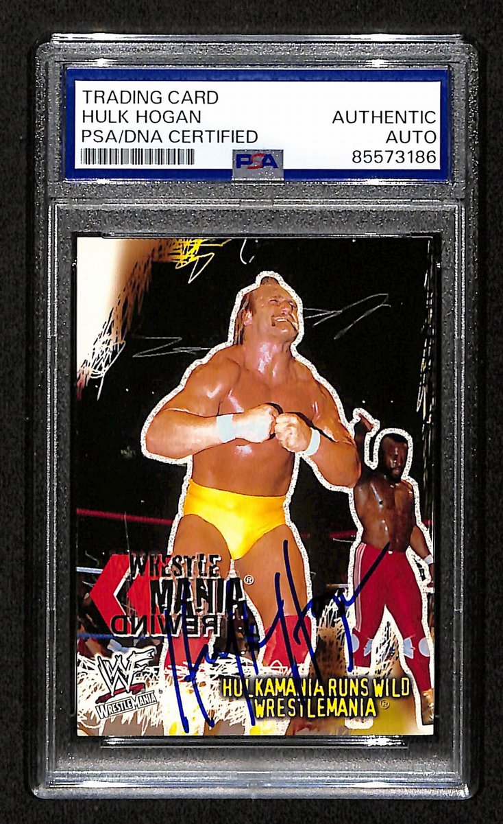 Offered is a Hulk Hogan Signed/Autographed 2001 Fleer WWF Card #82 WR. This card is authenticated by PSA/DNA and is encapsulated in their tamper-proof acrylic case.