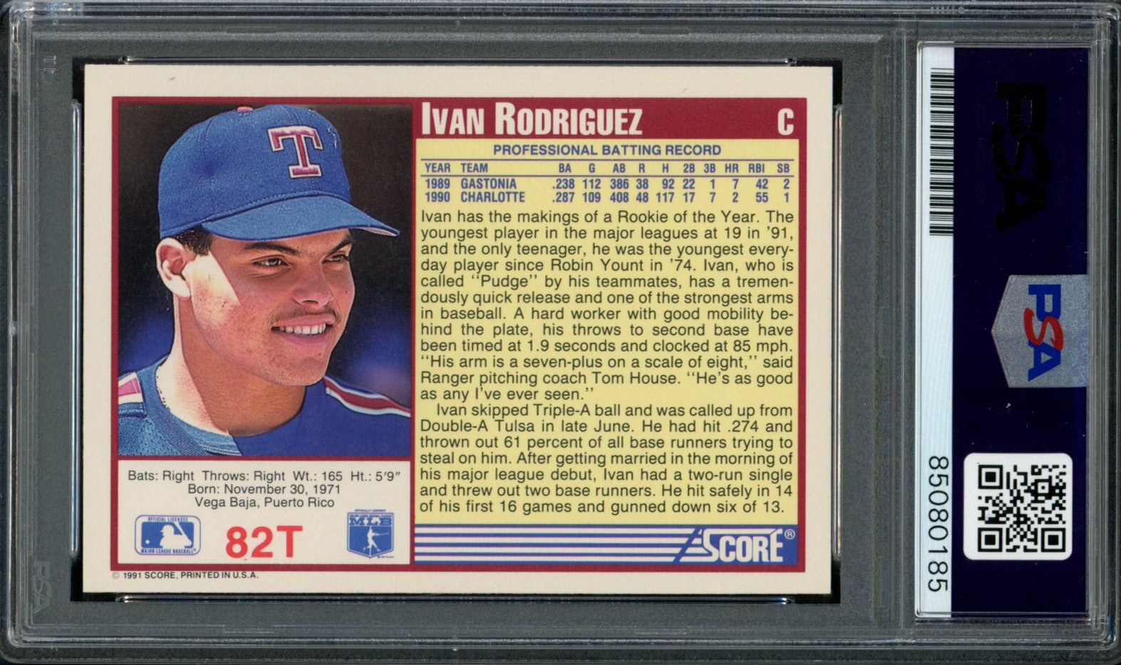 Ivan Rodriguez HOF Autographed 1991 Score Rookie Card #82T Rangers PSA/DNA