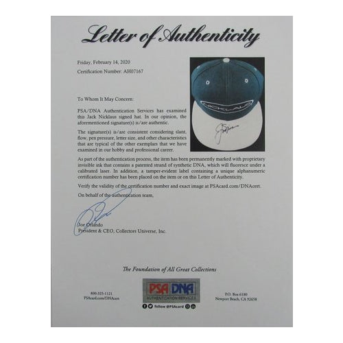 Offered is a Jack Nicklaus Signed Green New Era Air Bear Fitted Golf Hat Size 7 1/4. This hat is authenticated by PSA/DNA and includes their Tamper-proof Hologram Sticker and Letter of Authenticity.
