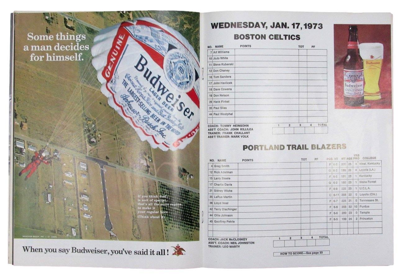 January 17, 1973 Boston Celtics vs.Portland Trail Blazers NBA Program