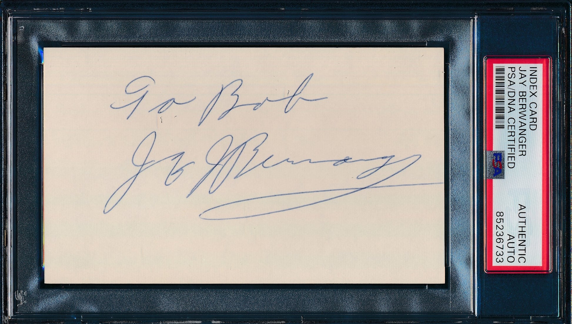 Offered is a Jay Berwanger Signed 3x5 Index Card University of Chicago 1935 Heisman. This card is authenticated by PSA/DNA and is encapsulated in their tamper-proof plastic case.