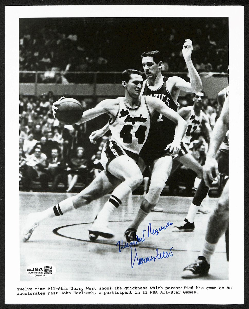 Jerry West HOF Signed/Inscribed 8x10 B/W Photo Los Angeles Lakers JSA 199136
