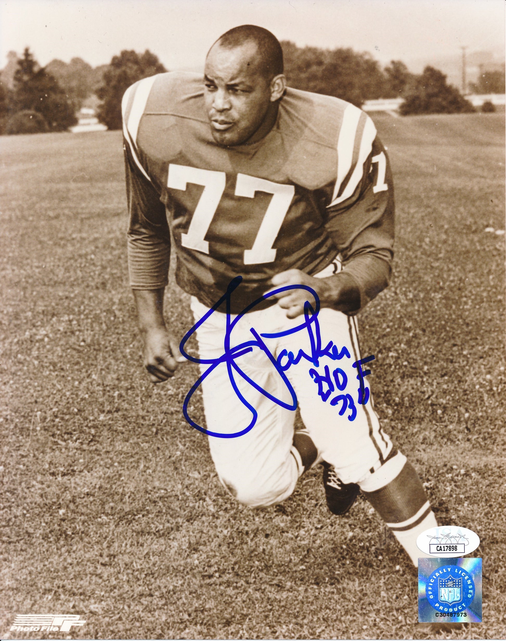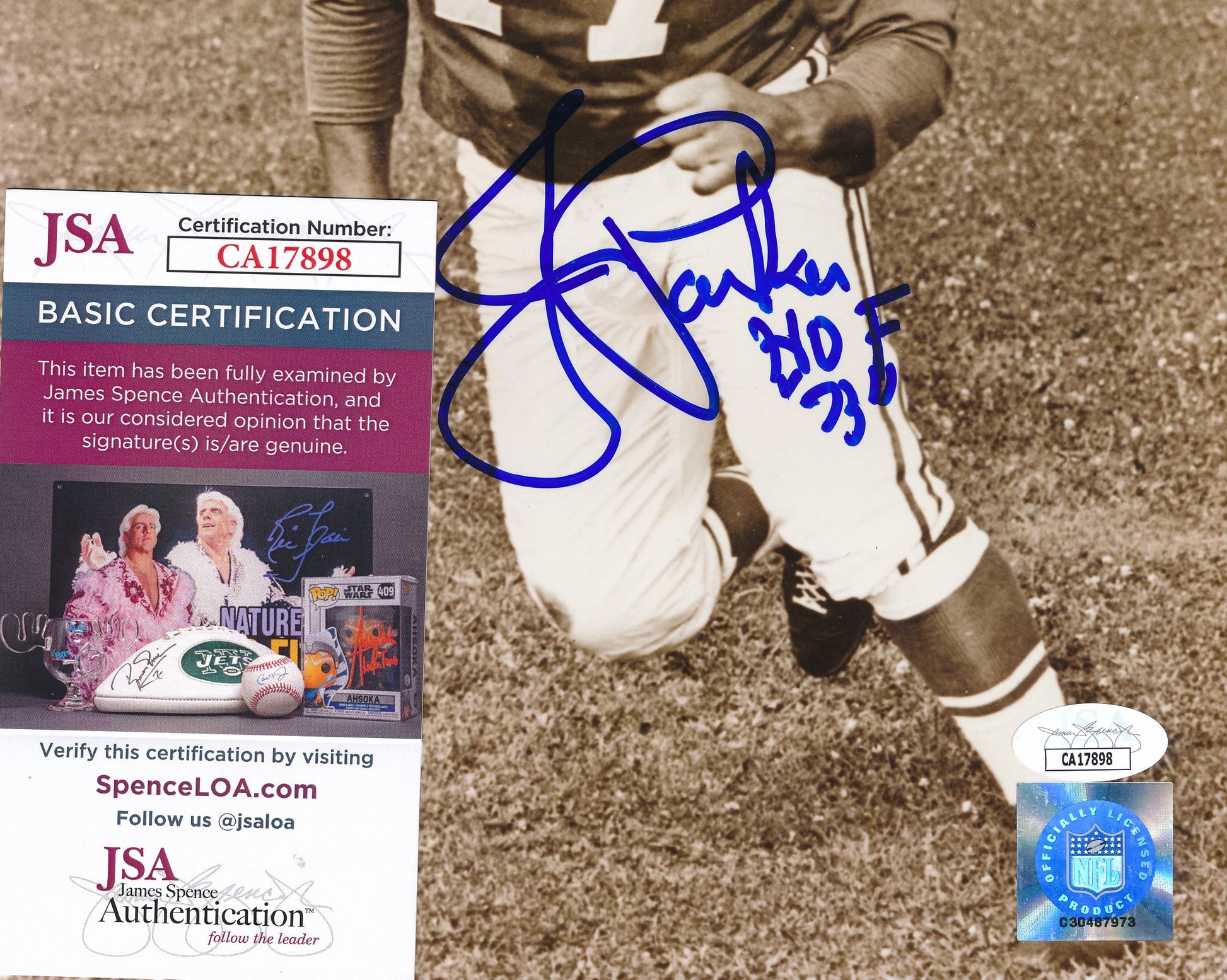 Offered is a Jim Parker HOF Signed/Inscribed "HOF 73" 8x10 Photo Baltimore Colts JSA 192961. This photo is authenticated by JSA and includes their tamper-proof hologram sticker and certificate of authenticity.