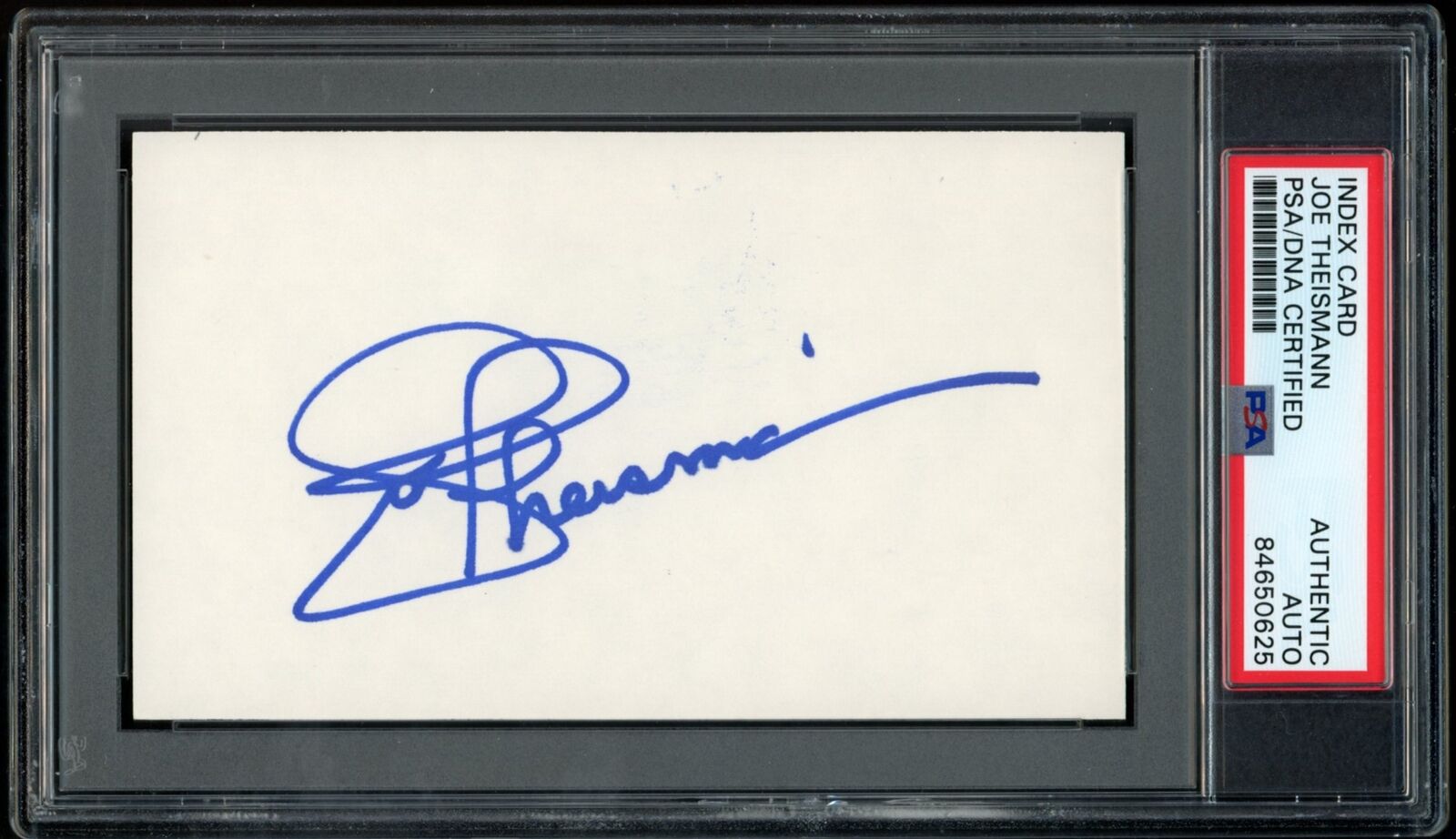 Offered is a Joe Theisman Autographed 3x5 Index Card Washington Redskins. This index card is authenticated by PSA/DNA and is encapsulated in their Tamper-proof Plastic Case.