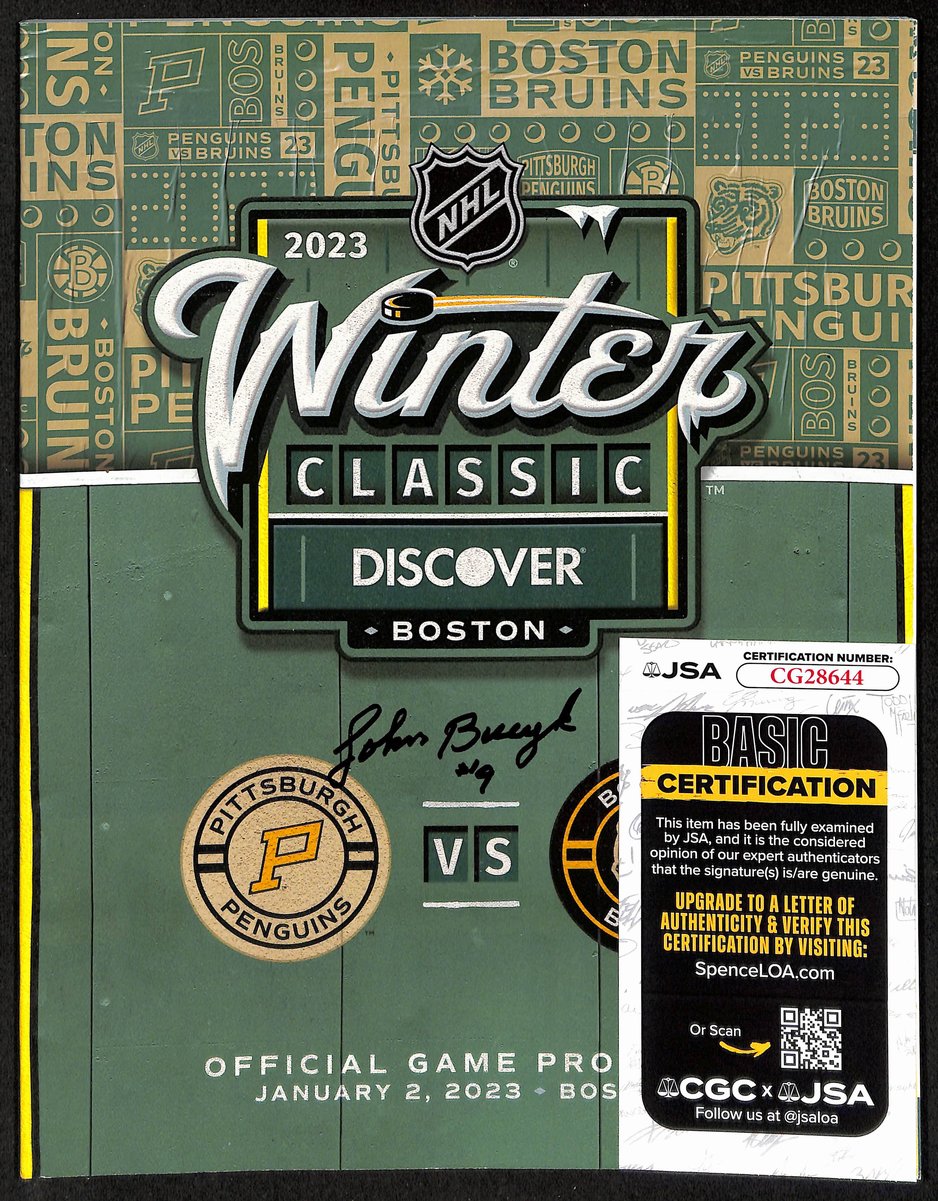 Offered for sale is a Johnny Bucyk Boston Bruins Signed 2023 Winter Classic Program JSA 197235