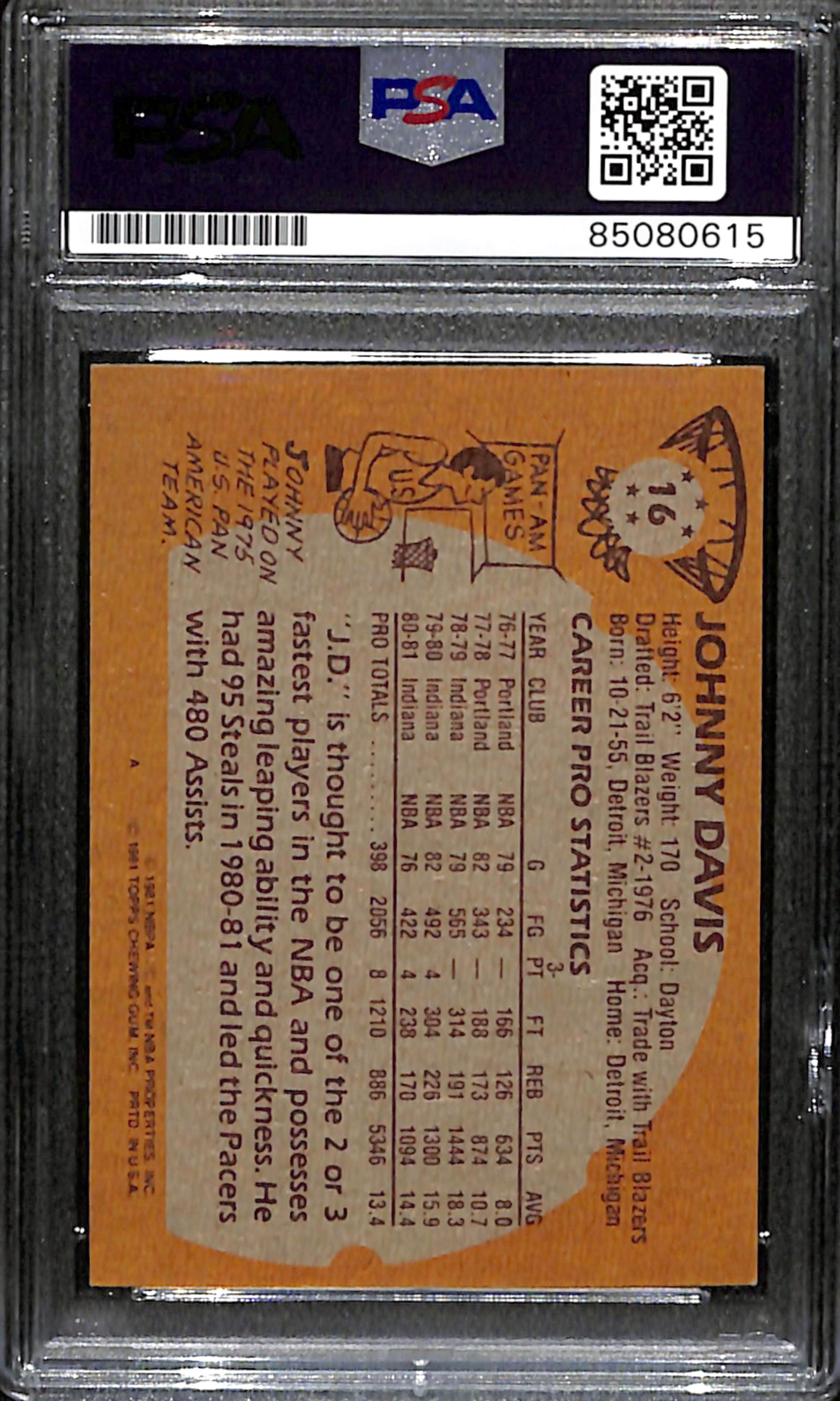 Johnny Davis Signed 1981 Topps Card #16 indiana Pacers PSA/DNA 185075