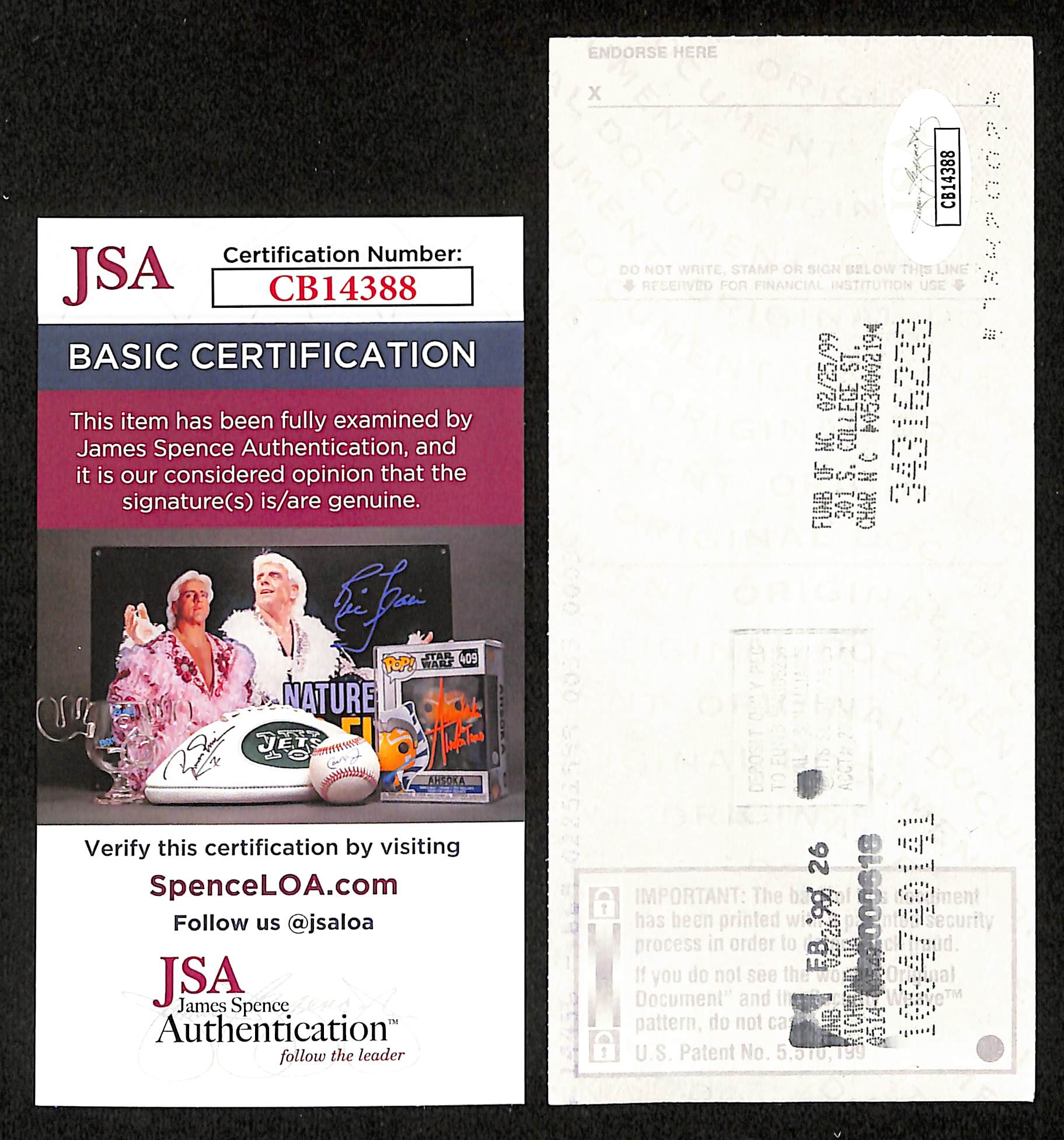Offered is a Johnny Unitas HOF Signed/Autographed 1999 Bank Check Baltimore Colts. This check is authenticated by JSA and includes their Tamper-proof Hologram Sticker and Certificate of Authenticity.