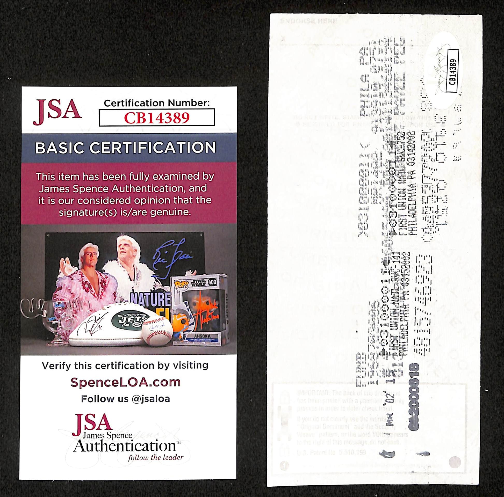 Offered is a Johnny Unitas HOF Signed/Autographed 2002 Bank Check Baltimore Colts. This check is authenticated by JSA and includes their Tamper-proof Hologram Sticker and Certificate of Authenticity.