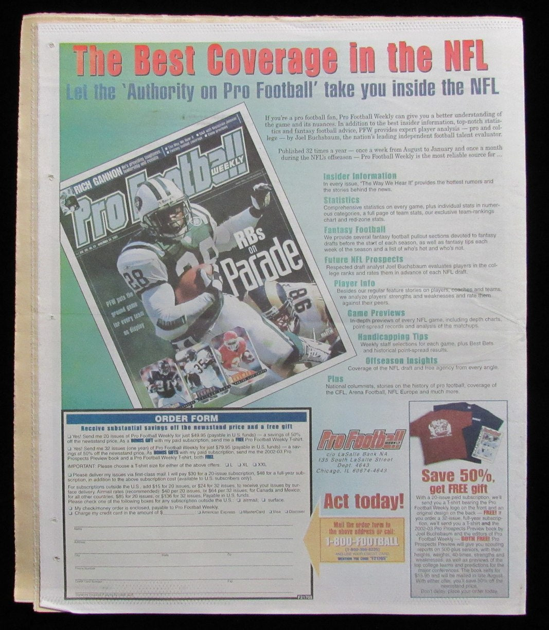 July 15, 2002 Pro Football Weekly Newspaper Peyton Manning on Cover 198246