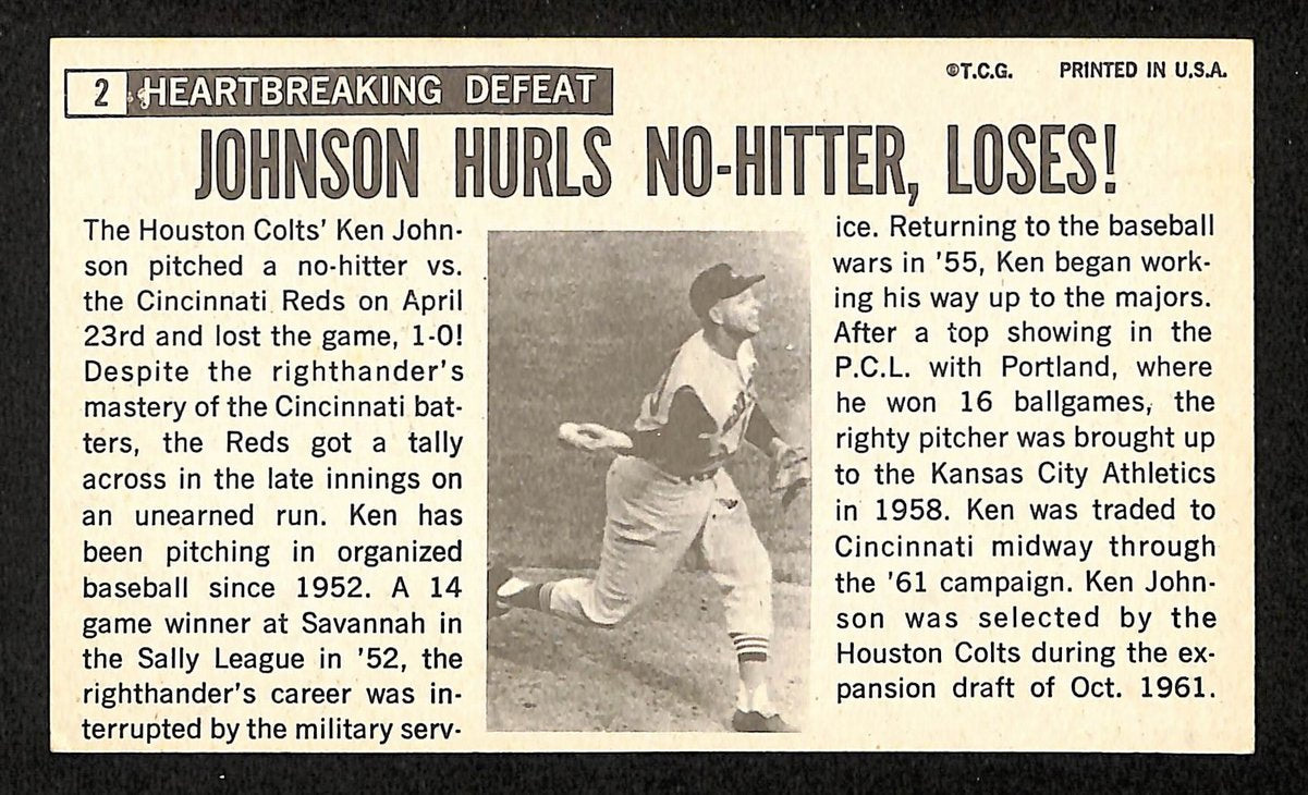 Offered is a Ken Johnson Signed/Inscribed 1964 TOPPS Giants Card #2 Houston Colts.