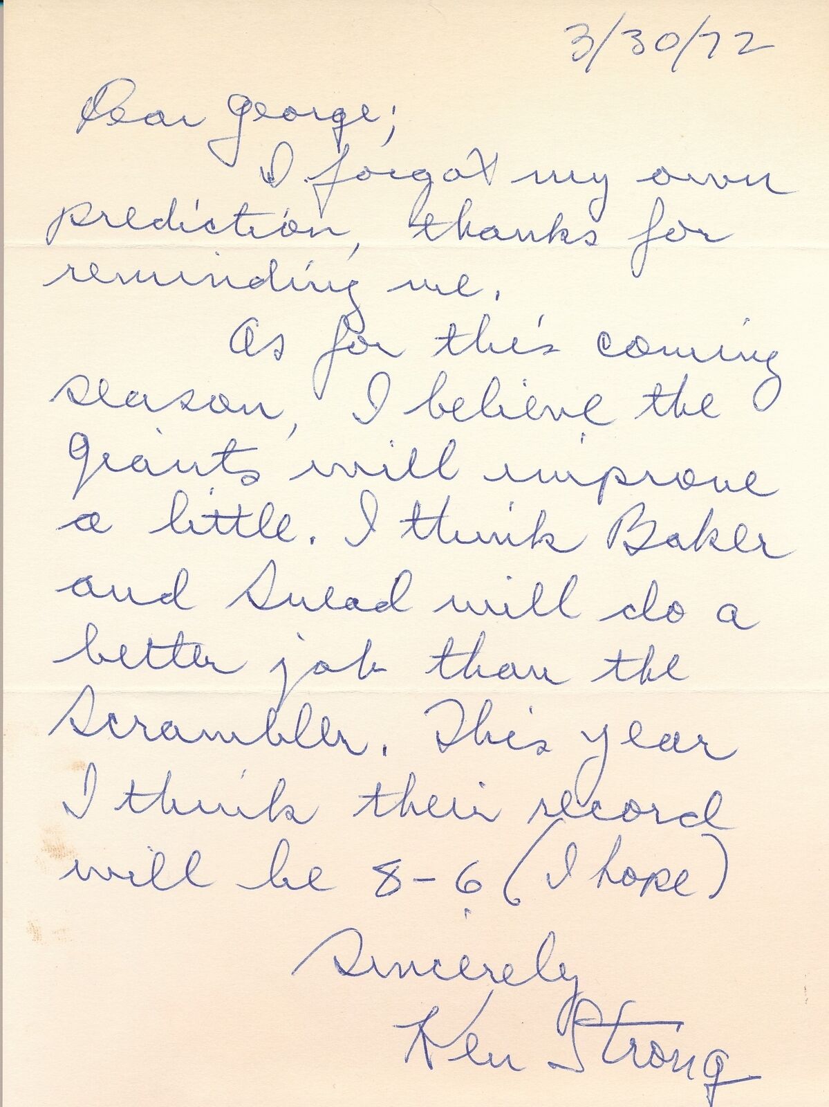 Ken Strong HOF Autographed Personal Letter New York Giants JSA