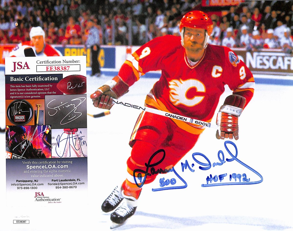 Offered is a Lanny McDonald HOF Signed/Inscribed 8x10 Photo Calgary Flames. This Photo is authentcated by JSA and includes their Tamper-proof Hologram Sticker and Certificate of Authenticity.