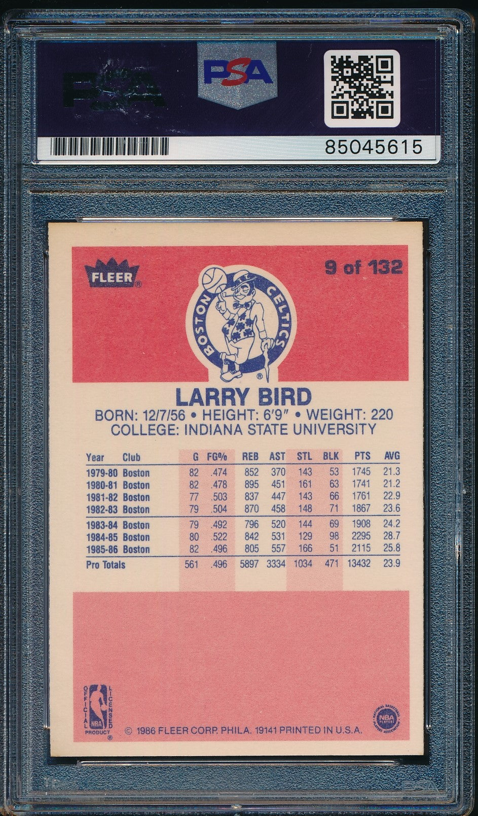 Larry Bird HOF Celtics Autographed 1986-87 Fleer Card #9 PSA/DNA 182207