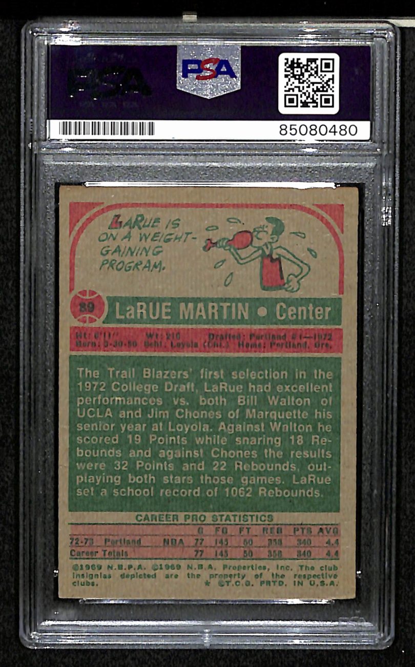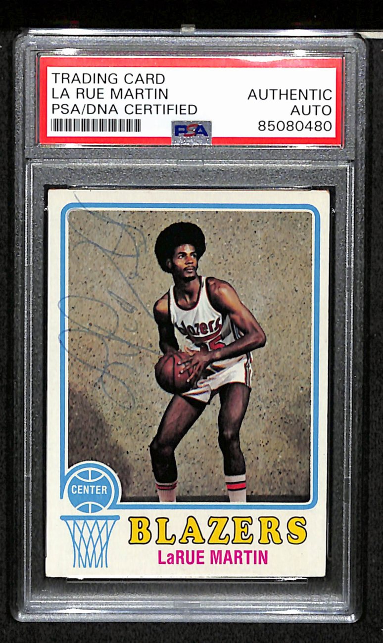 Offered is a LaRue Martin Signed/Auto 1973-74 Topps Card #89 Portland Trail Blazers. This card is authenticated by PSA/DNA and is encapsulated in their tamper-proof plastic case.