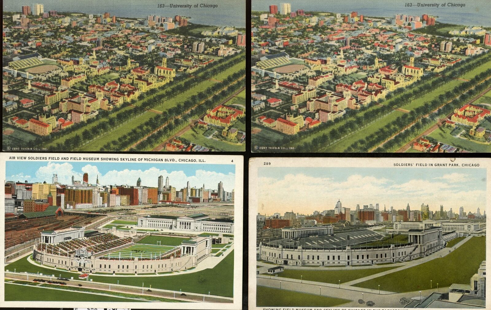 Lot of (4) 1940's Postcards Soldier Field Chicago, Ill. 176180