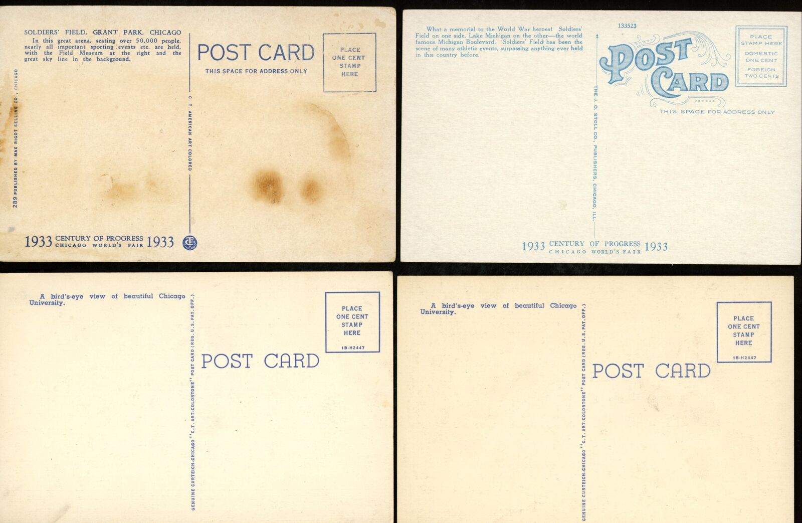 Offered is a Lot of (4) 1940's Postcards Soldier Field Chicago, Ill.