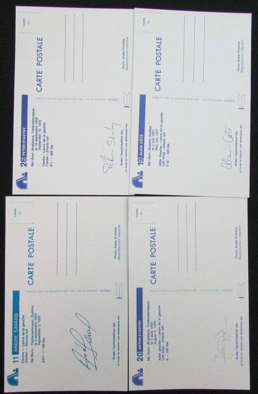 Lot of 4 Quebec Nordiques Signed 3.5x5.5 Team Postcard incl. Savard 150468