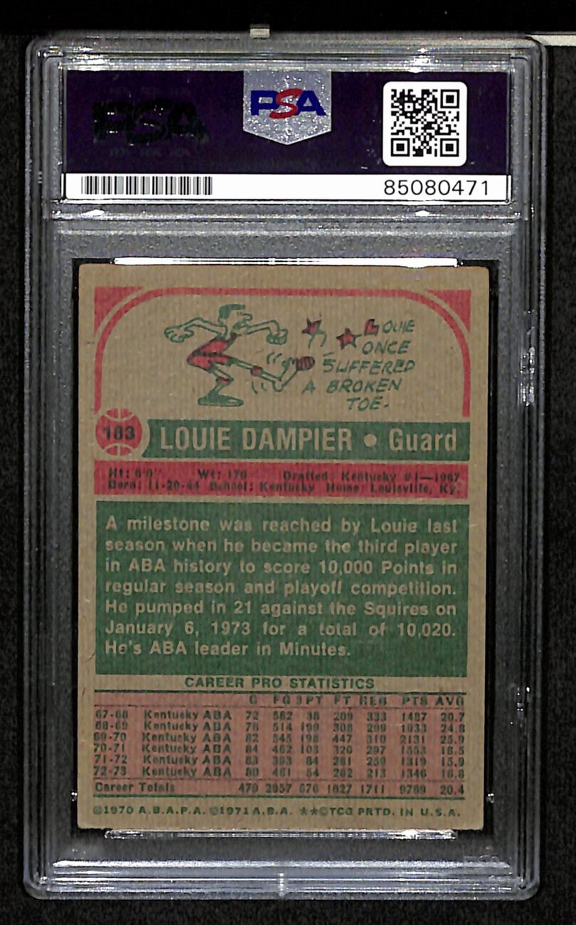 Offered is a Louie Dampier HOF Signed/Auto 1973-74 Topps Card #163 Kentucky Colonels. This card is authenticated by PSA/DNA and is encapsulated in their tamper-proof plastic case.