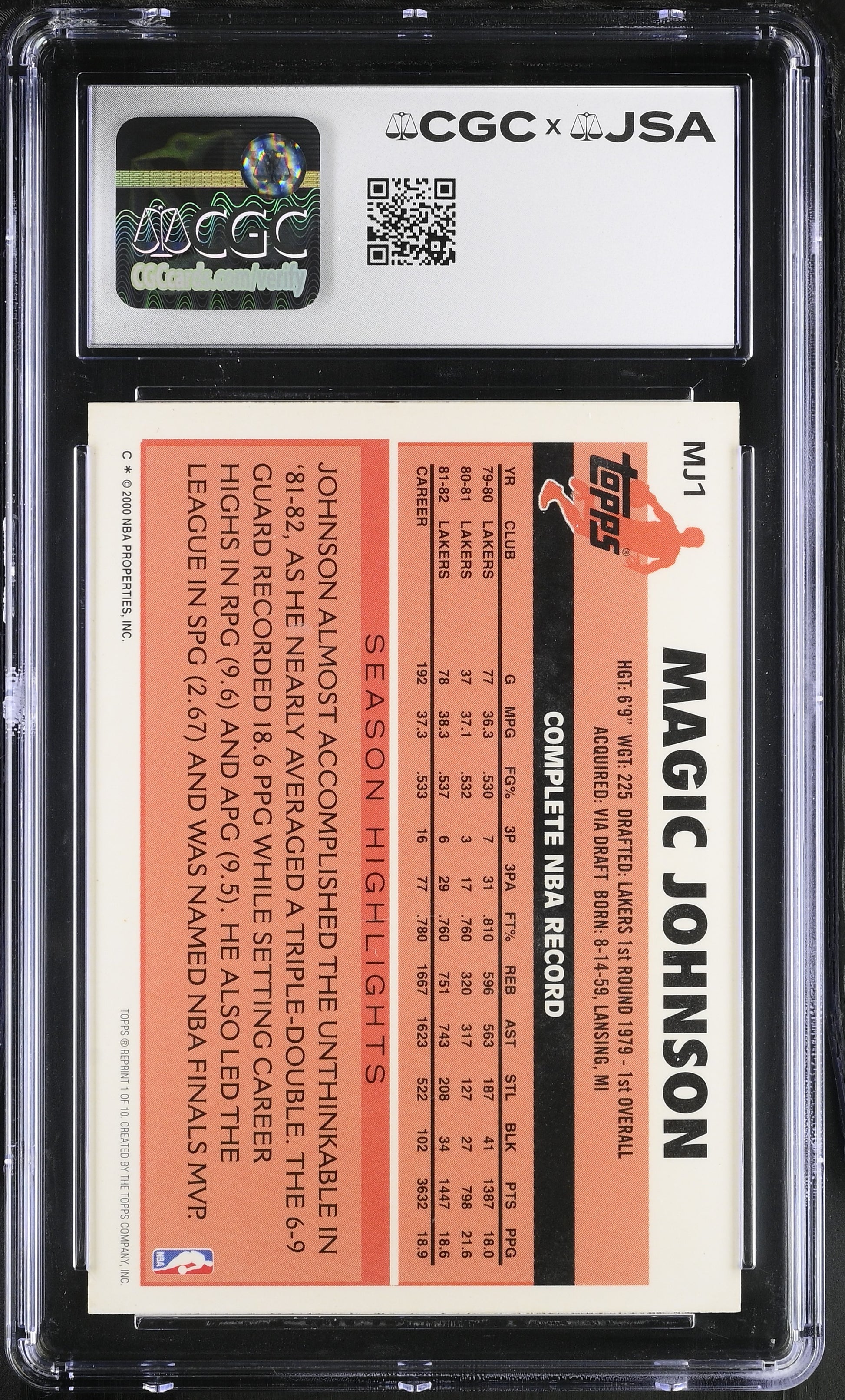 Magic Johnson 2000-01 Topps Signed/Autographed Card #MJ1 CGC x JSA BA206495