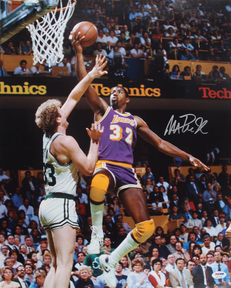 Offered is a Magic Johnson HOF Autographed 16x20 Photo. This photo is authenticated by PSA/DNA and includes their Tamper-proof Hologram Sticker and Certificate of Authenticity.