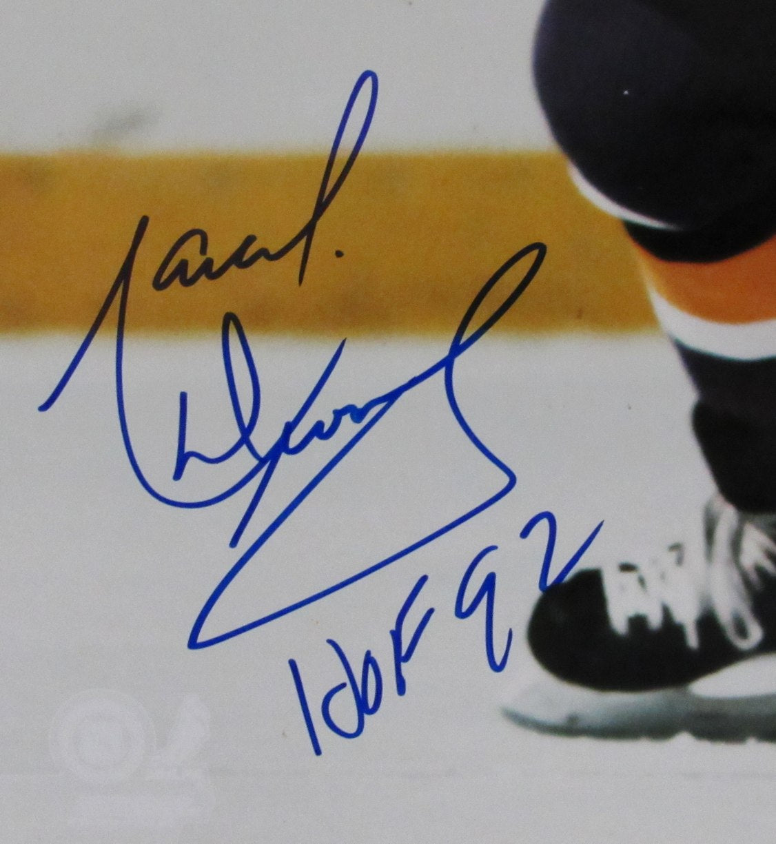 Offered is a Marcel Dionne HOF Signed/Inscribed "HOF 92" 11x14 Photo Los Angeles Kings. This Photo is authenticated by JSA and Includes their Tamper-proof Hologram Sticker and Certificate of Authenticity.