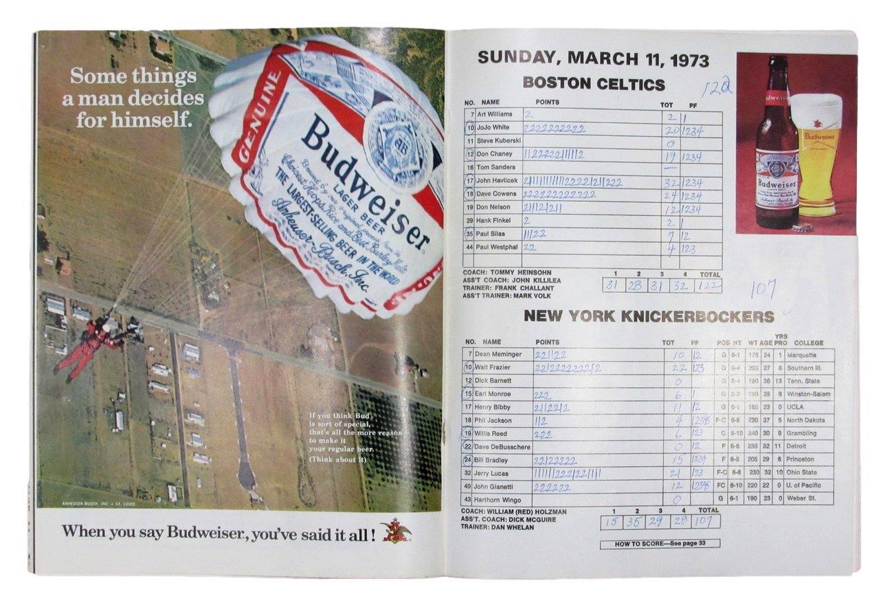 March 11, 1973 Boston Celtics vs. New York Knickerbockers NBA Program