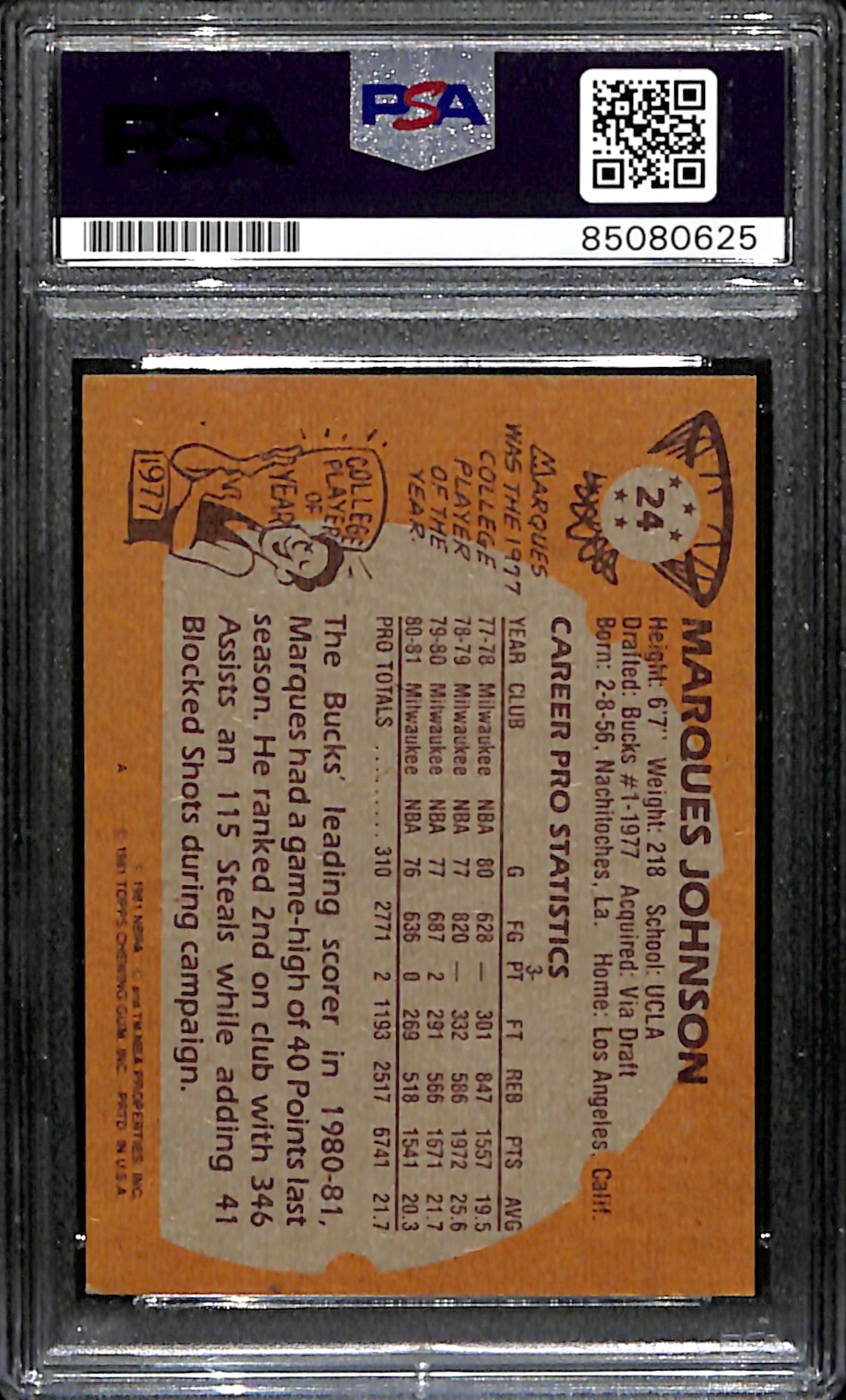 Marques Johnson Signed 1981 Topps Card #24 Milwaukee Bucks PSA/DNA 185079