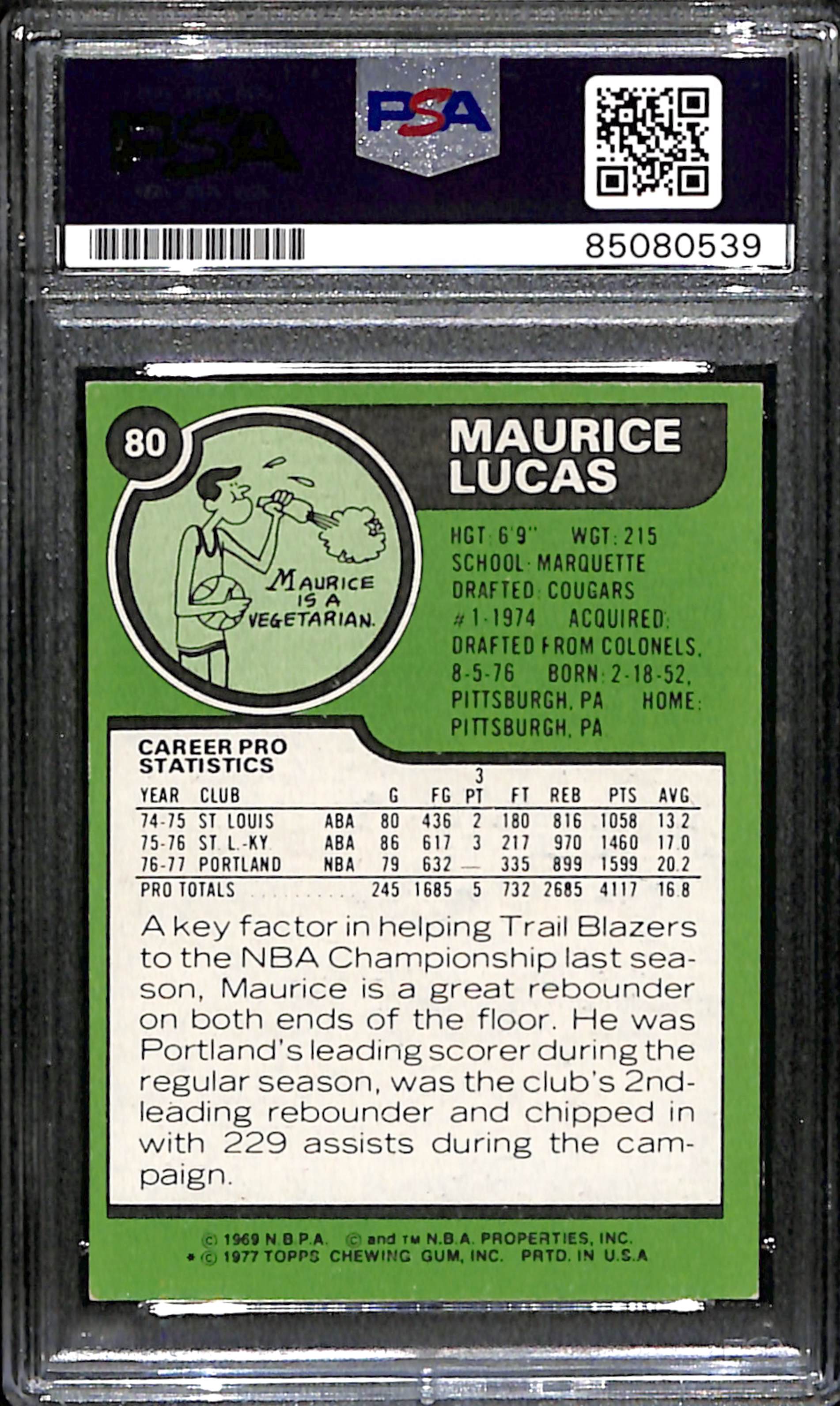 Offered is a Maurice Lucas Signed 1977 Topps Card #80 Portland Trail Blazers. This Card is authenticated by PSA/DNA and is encapsulated in their tamper-proof plastic case.
