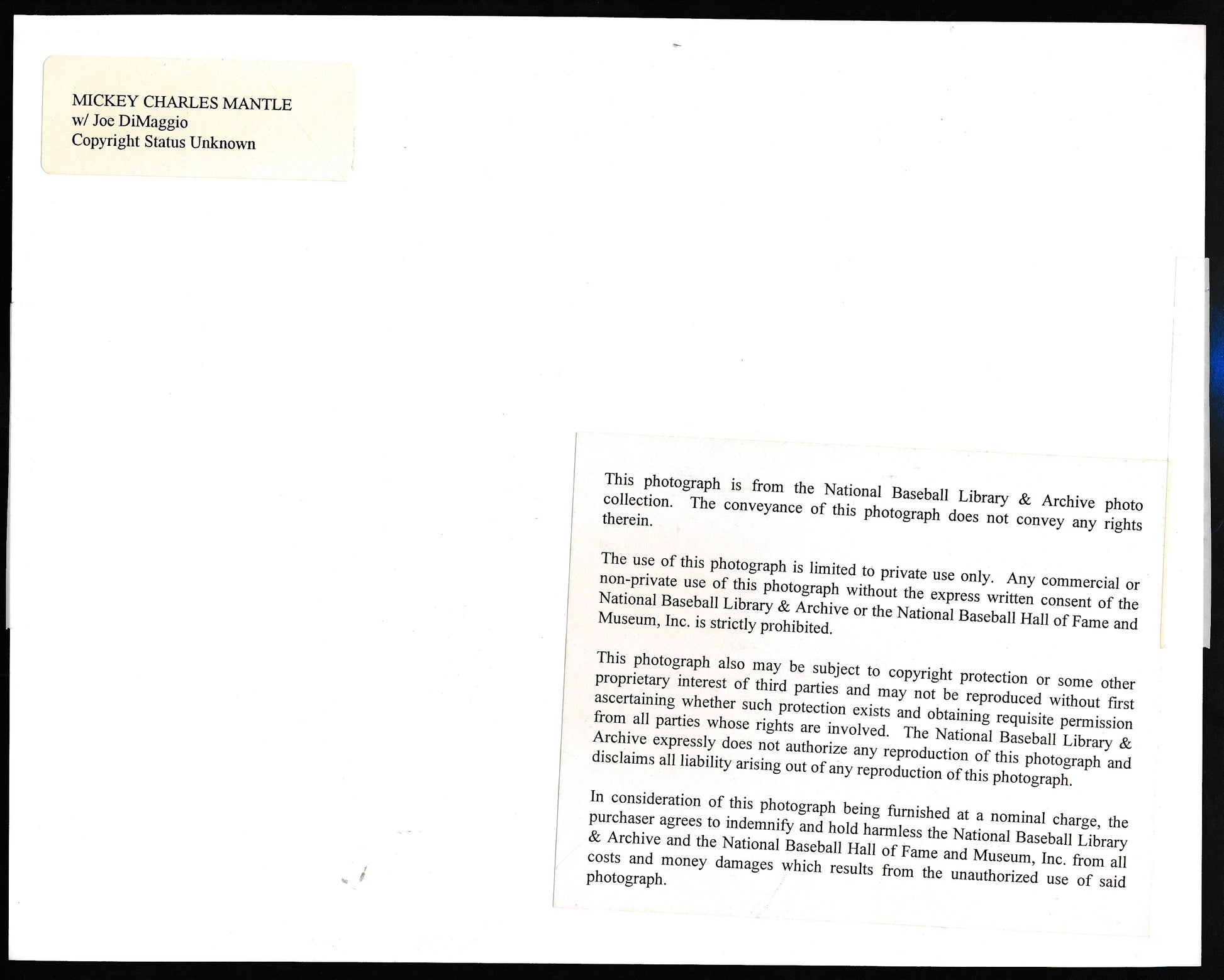 Mickey Mantle/Joe DiMaggio HOF UNSIGNED 8x10 B/W Photo New York Yankees