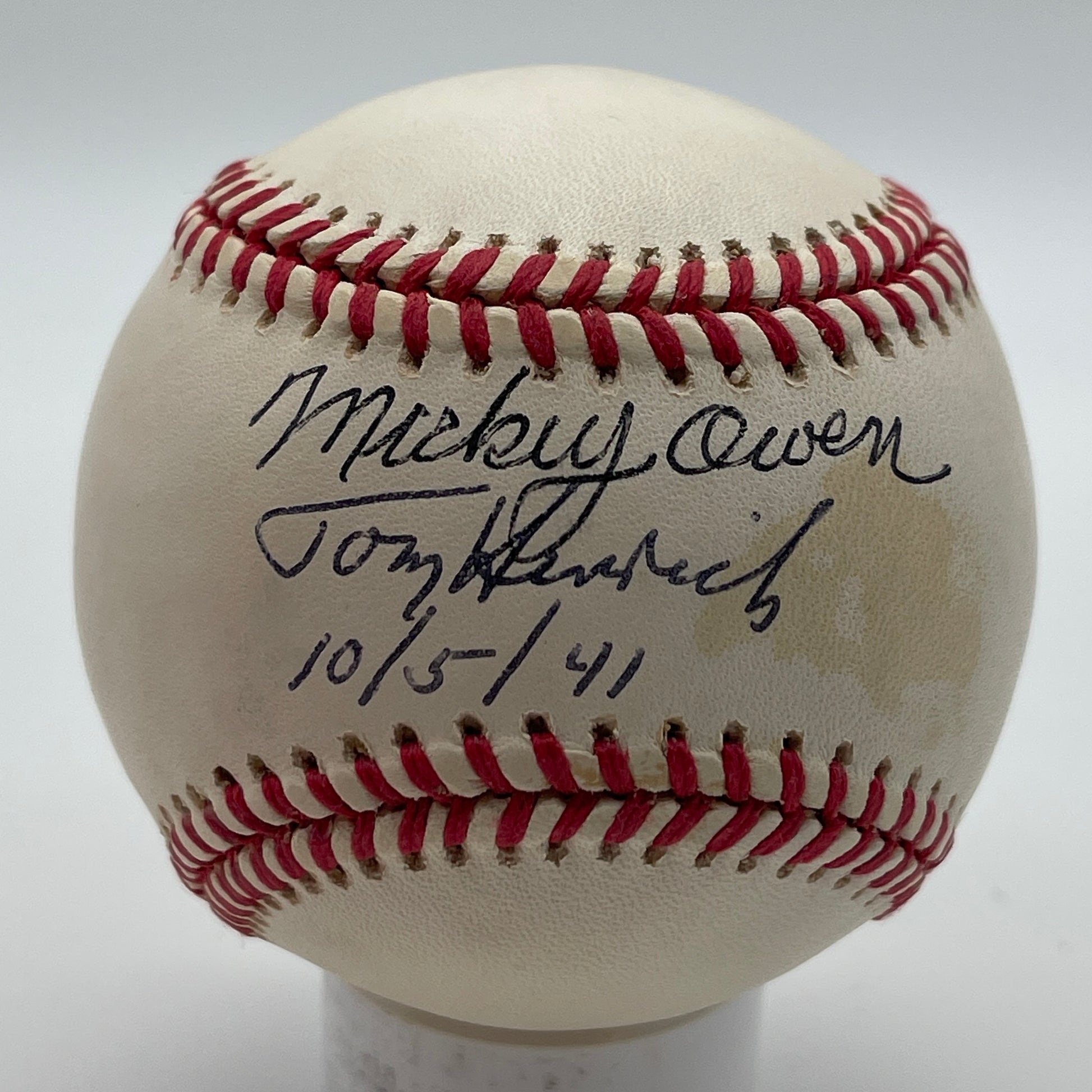 Offered is a Mickey Owen/Henrich Tommy Dual-Signed/Inscribed "10/5/41" ONL Baseball 1941 World Series. This ball is authenticated by PSA/DNA and includes their tamper-proof hologram sticker of authenticity.
