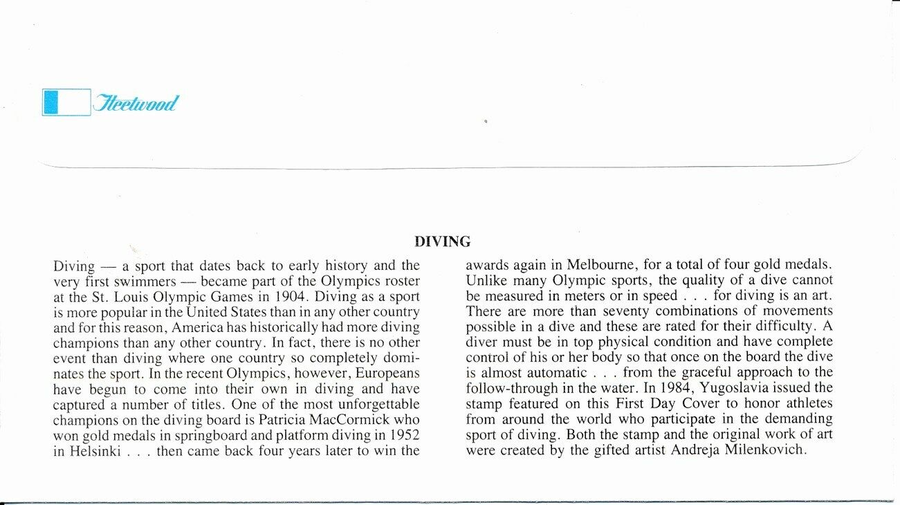 Micki King Olympic Gold Diving Signed 1984 First Day Cover/FDC 151287