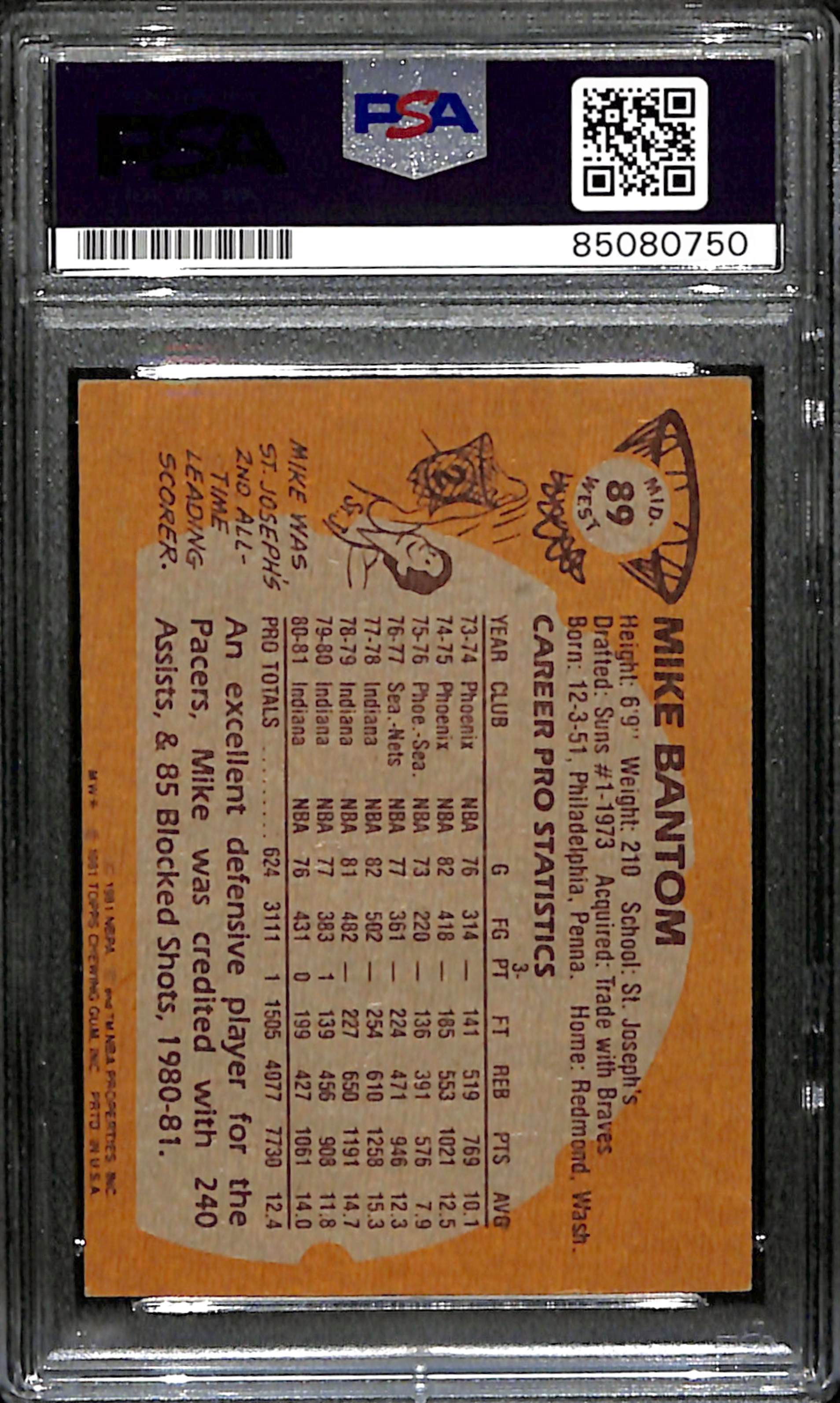 Offered is a Mike Bantom Signed 1981 Topps Card #89 Indiana Pacers. This Card is authenticated by PSA/DNA and is encapsulated in their tamper-proof plastic case.
