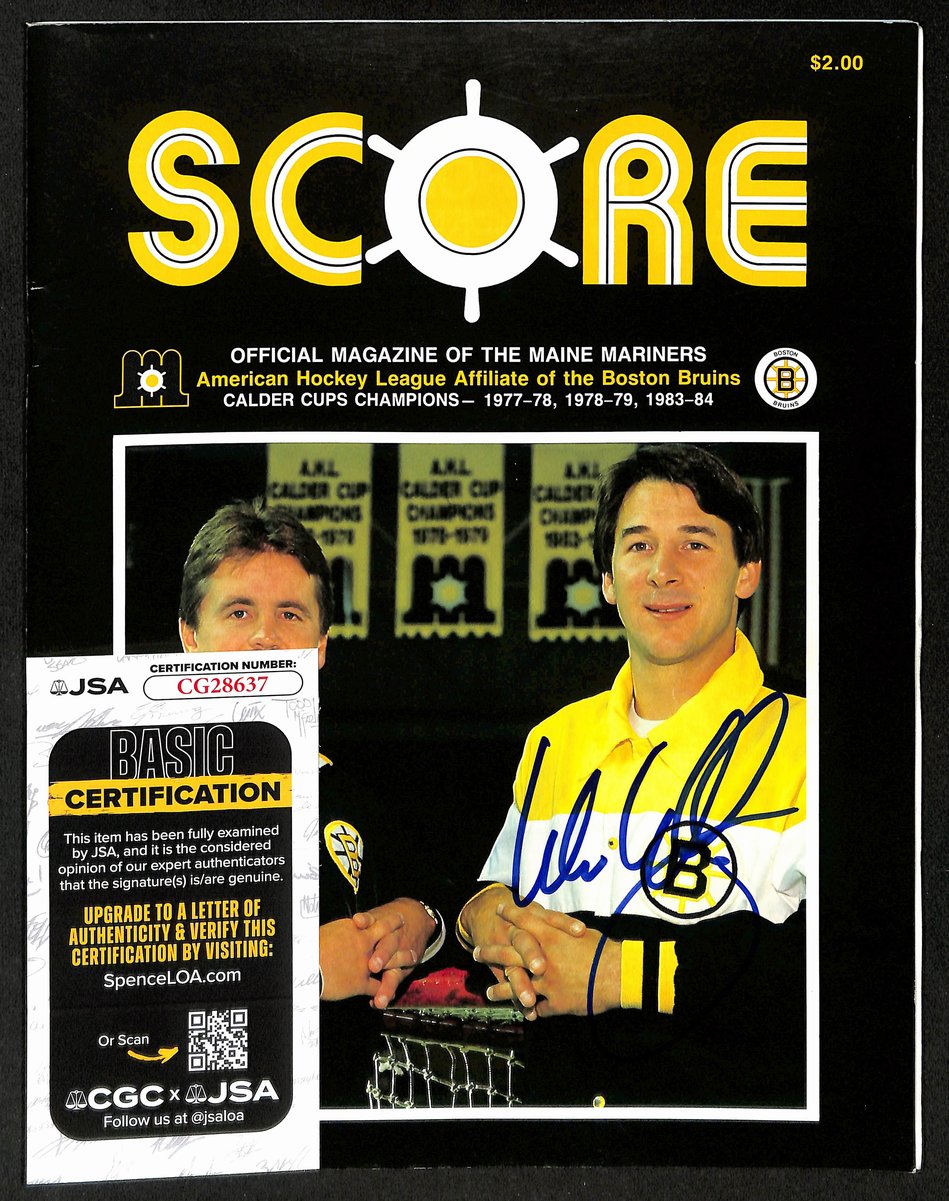 Offered for sale is a Mike Milbury Boston Bruins Signed Maine Mariners Score Program JSA 197241