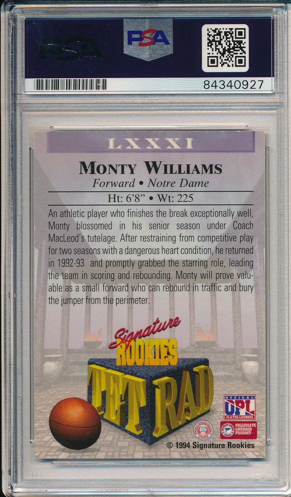 Offered is a Monty Williams Knicks Signed/Autographed 1994 Signature Rookies Card. This card is authenticated by PSA/DNA and is encapsulated in their plastic case.