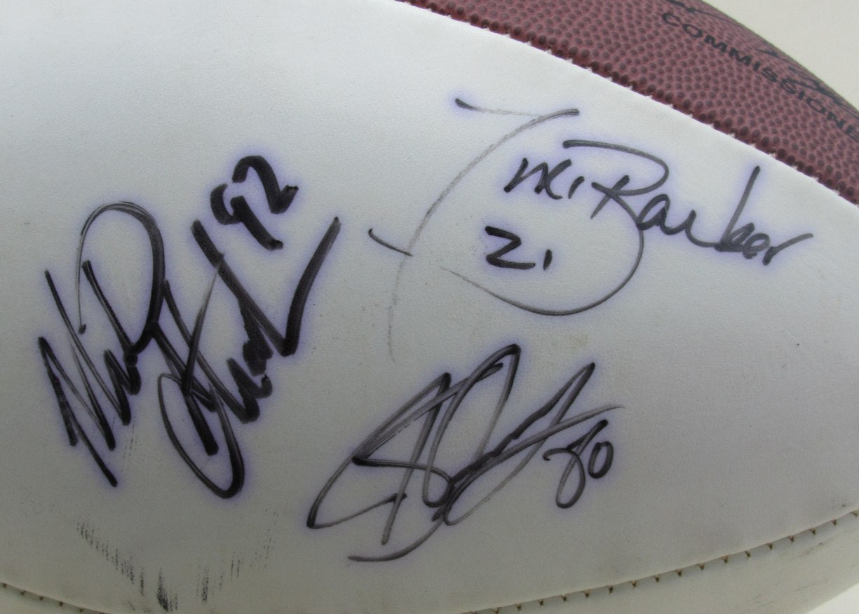 Offered is a New York Giants Greats Multi-Signed by 5 Players Wilson NFL Football. Signatures included: Tiki Barber, Jim Fassel, Kerry Collins, Jeremy Shockey, and Michael Strahan HOF. This Ball is authenticated by PSA/DNA and includes their Tamper-proof Hologram Sticker and Letter of Authenticity.