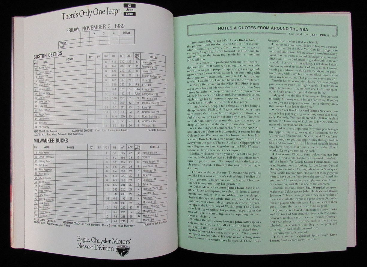 November 3, 1989 Hoop NBA Program Celtics vs. Bucks Larry Bird on cover 189163