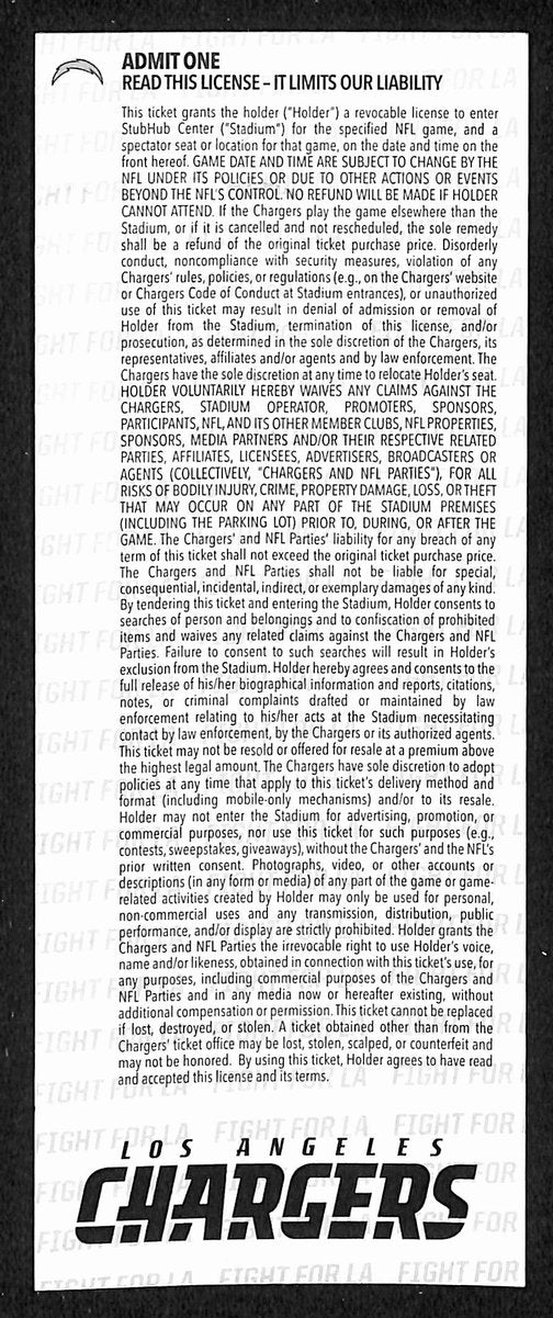 Offered is an October 1, 2017 Full Ticket San Diego Chargers vs. Philadelphia Eagles.